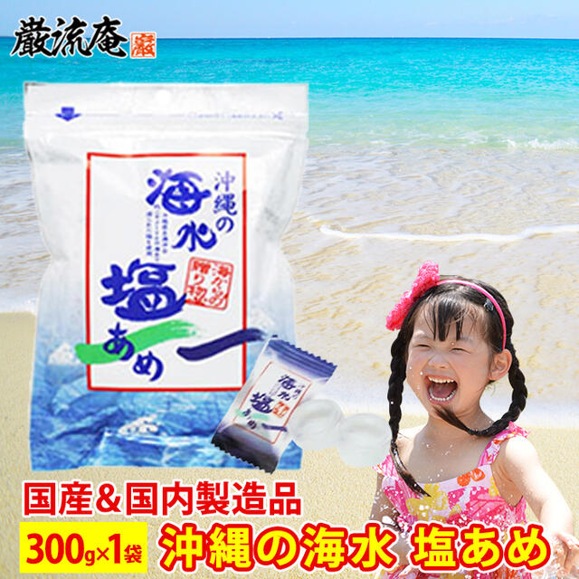 国産・国内製造品 沖縄の海水 塩あめ 300g【送料無料】 メール便送料無料!ポイント消化にもおすすめです! 「沖縄の海水塩あめ」は、平釜製法でじっくりと時間をかけて造り上げた塩を使用しています。