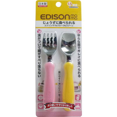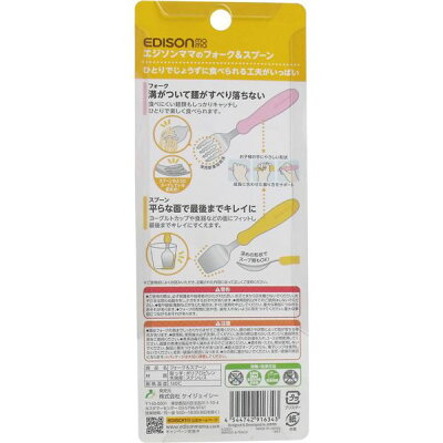 エジソンママのフォーク&スプーン マンゴー&ピーチ●お子様でも一人できれいに食べられるフォーク&スプーンのセットです。